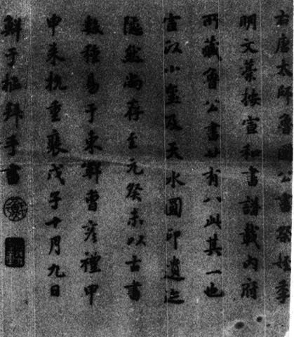 鲜于枢与同时的赵孟頫爲元初二大家,然若以此幅与赵书相较,则显然可见鲜于之书得唐人法度而子昂之书追晋人风韵。然法度可循,后学者犹可得前人规矩;风韵难求,纯出于人之气度涵养,故晋人风範不可企及。鲜于学唐而不失唐人之法,子昂学晋而难得晋人风韵,此二家之异,后人是丹非素,不免失之偏颇。然赵氏本人曾说:“伯机过余远甚,极力追之而不能及。”可知鲜于枢在当时书名之高,影响之大,此幅即可见其书风之一斑。 |