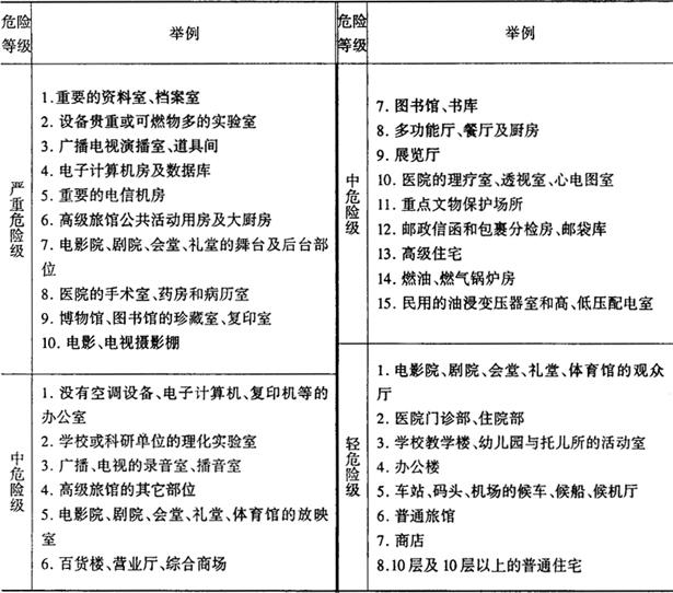 高层民用建筑灭火器配置场所的危险等级举例如表3-4-39。 表3-4-39 民用建筑灭火器配置场所的危险等级举例