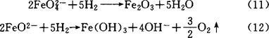 从电解液转移到阳级表面 阴极:2H2O→H22OH↑(--2e (8) 总反应式是: Fe+2OH-+2H2O→FeO2-+3H2(9) 及: 高铁酸根形成后很容易被阴极或阴极H↓(2还原,反应如下: