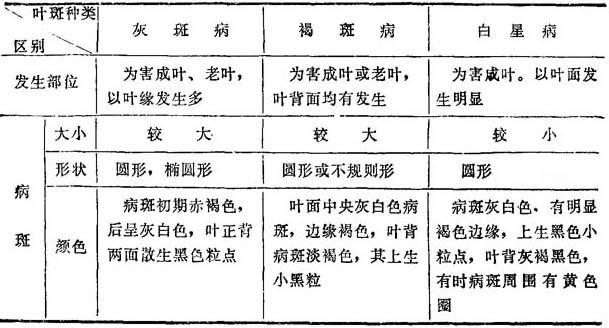 | 释义 | 4.龙眼叶斑病类 【症状】: 龙眼叶斑病类,主要以病害在叶片上产生斑点、斑枯、落叶为特点,故称“叶斑”病类。现将其发病部位、症状特点及区别分述如下。 灰斑病 常发生于成叶或老叶上。病斑多从叶尖向叶缘扩展,初期发病的叶上生赤褐色圆形、椭圆形病斑,以后逐渐扩大,常多个病斑愈合成不规则形大斑,其后病斑变为灰白色。病斑两面散生黑色粒点,老熟后破裂外露,散出黑色粉末状物(即分生孢子)。 【病原】: 本病原为一种真菌,属半知菌亚门。分生孢子盘埋于寄主表皮下,成熟后外露。分生孢子纺锤形,具4横隔,五个细胞,中间三个较大,暗茶褐色,两端细胞较少,透明无色,下端细胞具一短柄,上端细胞有2-3条附属毛,与分生孢子等长,无色。分生孢子大小为18-24.6毫米×6-6.6毫米。 褐斑病 为害成叶和老叶。初期发病在叶上生圆形或不规则形褐色小斑点,扩大后叶面病斑中间灰白色或淡褐色,病斑周围有明显的褐色边缘,叶背病斑淡褐色,边缘不明显,后期病叶表面生出小黑粒(即分生孢子器)。病斑常数个愈合成不规则形大斑,蔓延至叶基部,引起落叶。 本病原为一种真菌,属半知菌亚门。分生孢子器褐色或黄褐色,略呈球形,埋生于表皮下。分生孢子无色,透明,长椭圆形或卵圆形,双胞,两端圆并各有一油球,无色或淡色。 自星病 为害成叶。初发病叶面生针头大小圆形、褐色小斑点,扩大后为灰白色病斑。病斑周围有一明显褐色边缘,其上生数个黑色小粒点(即分生孢子器)。叶背病斑灰褐色,边缘不明显,有时病斑周围有一黄晕圈。 本病原为一种真菌,属半知菌亚门。分生孢子器埋生于寄主表皮下叶肉中,成熟后突破表皮外露。分生孢子器暗褐色,圆球形,具孔口,略微突出,大小为62.5-112.5微米×97.5-162.5微米。分生孢子椭圆形,无色,单胞,大小为3.75-5微米×2.25微米。 上述三种叶斑病症状区别见表3-1。 表3-1 叶斑病三种病害的病症区别