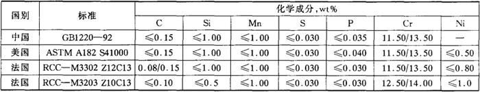 (12)应用 1Cr13钢主要用作抗弱腐蚀介质,并要求具有较高韧性及受冲击负荷的零部件,如汽轮机叶片、水压机阀、结构架、螺栓、螺帽等。在反应堆环境中,主要用于2、3级辅助泵传动轴、蒸发器支承件、控制棒驱动机构等。 |