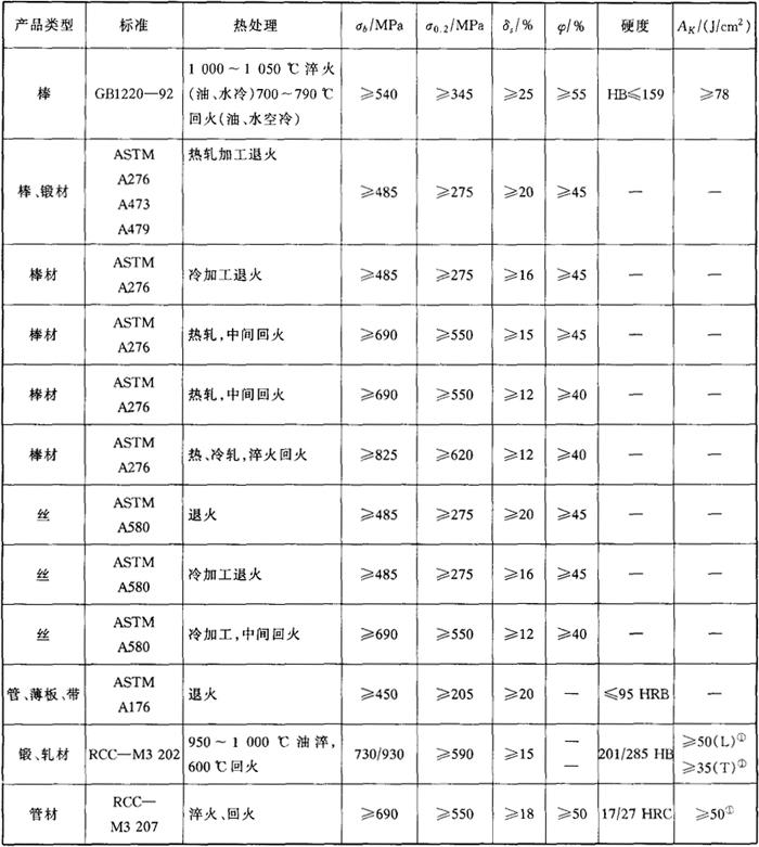 注:①aKV(J/cm2)。 表3-3 1Cr13(截面尺寸≤60mm)的实测力学性能