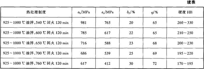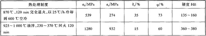 注:热处理制度:1030~1050℃油淬,680~700℃回火空冷,疲劳循环次数:107。 表3-11 在不同介质中的疲劳极限(热处理同表3-8)