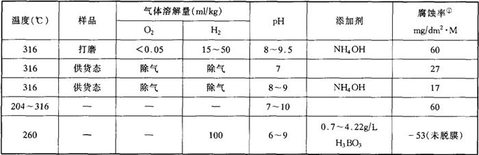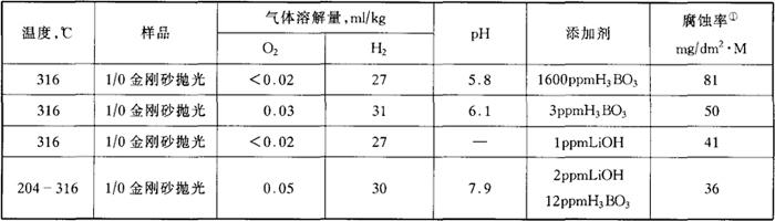 表3-14 1Cr13钢在压水堆冷却剂中的腐蚀