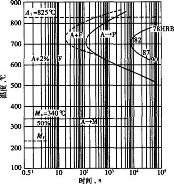等温转变曲线:0.10C-12.4Cr的1Cr13钢,奥氏体化温度为980℃的等温转变曲线见图3-7。