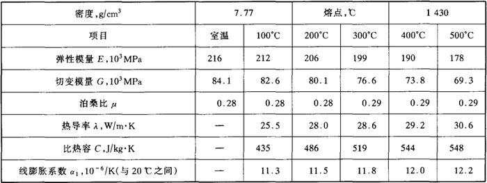 冶金厂通常以退火状态交货,以便最终用户加工制造。在制造厂的最终热处理为淬火并高温回火,其组织为回火索氏体和少量铁素体。回火温度的选择视其使用要求而定,可参阅图3-2。 (10)工艺性能 1Cr13钢的冷塑性及深冲性、抛光性和切削加工性能良好,板材的深冲度与其厚度有关,板材愈厚深冲度愈高。1Cr13钢的热加工温度以850~1200℃为宜,随后需灰冷或砂冷。1Cr13具有良好的焊接性能,其焊接性能与0Cr13相近,可采用0Cr13或奥107、奥207的焊条焊接,为防止焊接接头的冷裂纹,焊前应该预热,预热温度为200~300℃,焊后经700~750℃热处理可获得良好的性能,选用奥氏体焊接材料焊接,焊后可不进行热处理。应该强调的是,当焊后焊缝需进行机械加工时应进行退火处理。 (11)物理性能 1Cr13钢的物理性能见表3-18。 表3-18 1Cr13钢的物理性能