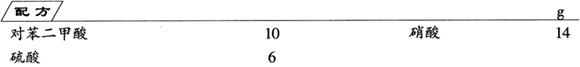 制法 将10g对苯二甲酸分几次加到10℃以下的硝酸与硫酸的混合酸中,其中硫酸是含50%SO3的发烟硫酸,硝酸与硫酸的质量比为7∶3,加入后,升温至45~50℃,于此温度下反应4h。反应完毕,冷至20℃,过滤、水洗、干燥,得到熔点为266~268℃的闪光晶体产品。产率为62.9%。 除采用本法,即硝酸-发烟硫酸(50%SO3)法制备2-硝基对苯二甲酸外,还有其他几种制法。如硝酸-发烟硫酸(20%~30%SO3)法、化学纯硝酸-硫酸(98%)法、工业品硝酸-硫酸(90%以上)法,其产率随硫酸浓度的不同而异。 |