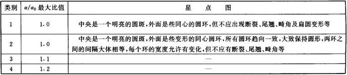 注:α0代表平行光管的理论分辨率;α代表玻璃放入平行光管后的分辨率。 2.2.2.2 玻璃的光学均匀性以一块玻璃中各部位间的折射率微差最大值△nmax表示时,按表1-7分为4类。 表1-7