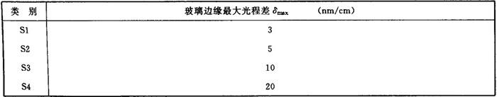 2.2.3.2 玻璃的应力双折射以其距边缘5%直径或边长处单位厚度上的最大光程差δmax(nm/cm)表示时,按表1-9分为4类。 表1-9