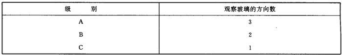 2.2.4.2 根据规定观察玻璃的方向数,玻璃的条纹度按表1-11分为3级。 表1-11 玻璃条纹度分级