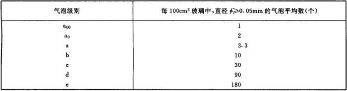 光学玻璃的气泡度级别也可根据每100cm3玻璃内允许含有的气泡数量按表1-13分为7级。 表1-13 玻璃气泡度分级