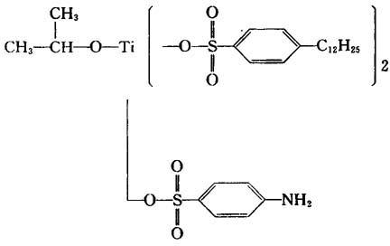 | 释义 | 4-氨基苯磺酰基二(十二烷基苯磺酰基)钛酸异丙酯 【结构式】: