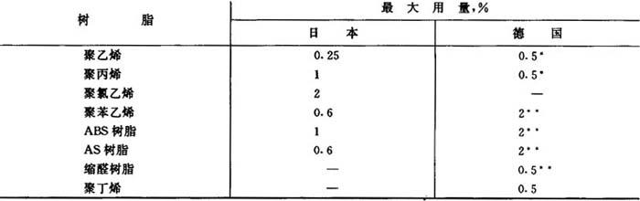 *抗氧剂总用量为1%以下。 **抗氧剂总量。 国外生产厂