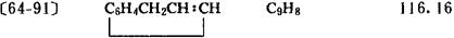 [苯并环丙烯;Indonaphthene] M.I.11,4851 性状 无色油状液体。能与多种有机溶剂相混溶,不溶于水。在贮存时能逐渐聚合和氧化。mp -1.8℃;bp10 60-62℃/1.333kPa; 注意事项 该品易燃。应远离火种存放。密封避光保存。