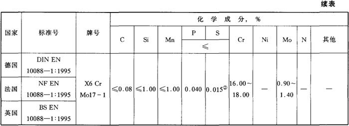 | 释义 | S11790 1Cr17Mo (1)化学成分 表3-105 国内外相应牌号及化学成分