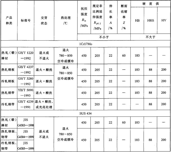 (3)主要特性和用途 此钢是1Cr17的改良钢种,在1Cr17的基础上加入0.75%~1.25%钼,既提高钢的切削性能,又使其耐盐溶液腐蚀的能力比1Cr17增强。 用于制造汽车外装零部件等。 |