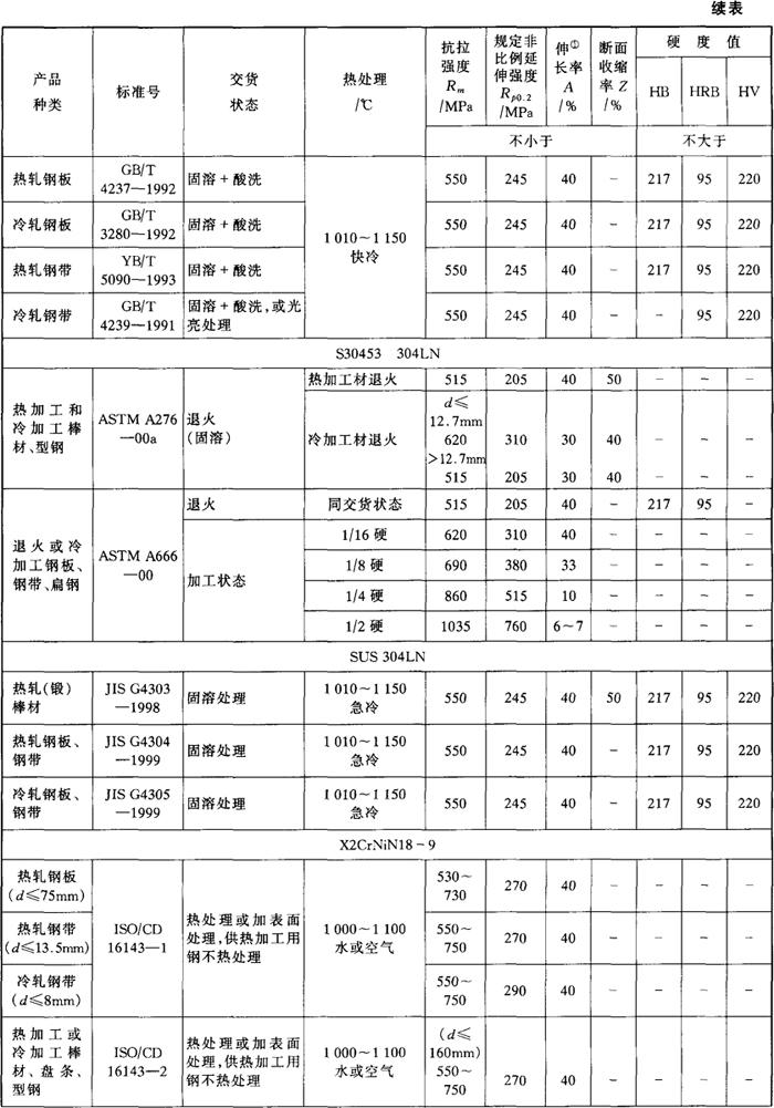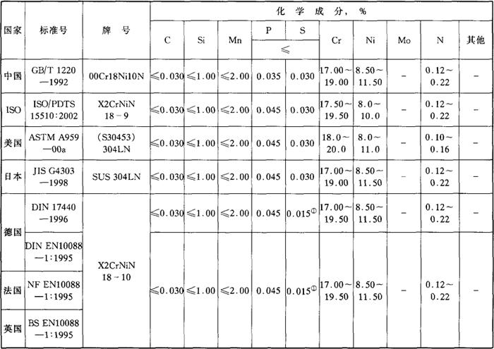 表3-23 国内外相应牌号及化学成分