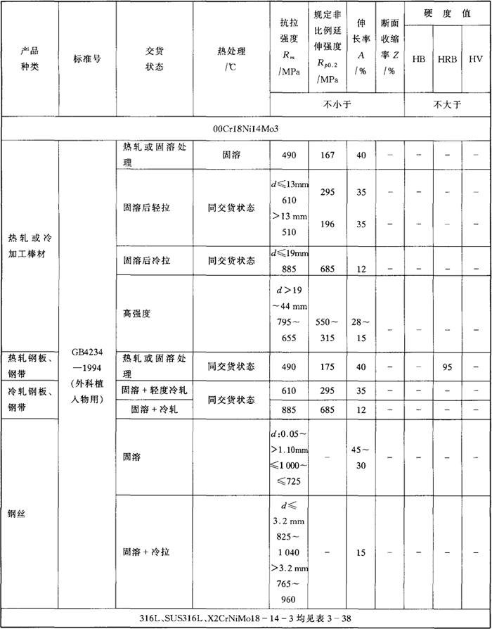 此钢的特性与00Cr19Ni13Mo和00Cr18Ni13Mo3钢相近,可用于与这两种钢环境基本相同的条件下。但此钢常作为外科植入材料使用。