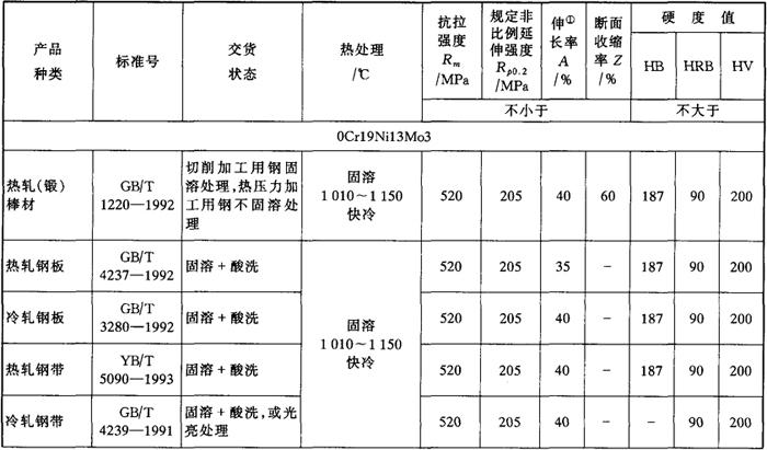注:①ASTM标准试样标距为Lo=50mm。 (3)主要特性和用途 比0Cr17Ni12Mo2钢耐点腐蚀性好。 用于制造染色设备和耐点腐蚀的零部件。 |