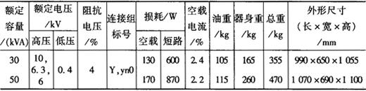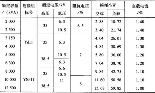 表4-7 SZ9系列(35kV)有载调压电力变压器技术数据