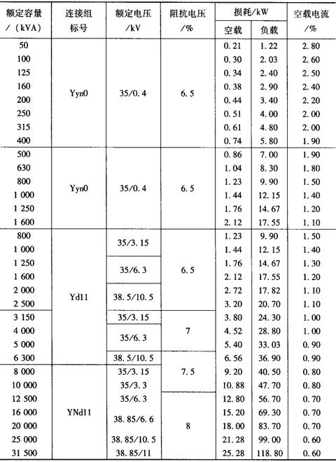 35kV S9系列电力变压器技术数据见表4-5。 表4-5 S9系列(35kV级)无励磁调压电力变压器技术数据