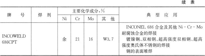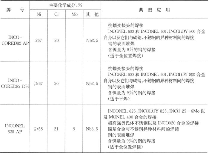 注:①仅适用于GTAW。 表5.7-3 SMC国际超合金集团生的产主要镍合金药芯焊丝