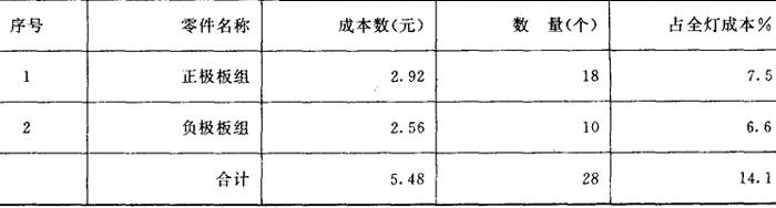 表2 Ⅰ型矿灯A组零部件成本占全灯成本比重表