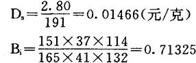 式中:GY为Ⅰ型矿灯胶槽重量0.485kg; PS为ABS塑料比重1.07; PY为硬橡胶胶槽壳比重1.6。 代入: Gw=0.485× 代入原式: G3=0.324-0.324× =0.324-0.282=0.042kg 将G1=0.161KG,G2=0.0919KG,G3=0.042KG,G7=1.928KG。 代入前式:Gs=G7-(G1+G2+G3)=1.928-(+0.161+0.0919+0.042)=1.928-0.2949=1.6331KG 所以,预测按第一方案更新后的矿灯重量为1.6331kg。 (4)成本预测 预测按第一方案更新后产品的成本。WS-1矿灯的成本为38.686元,重量为2.25kg。预计更新后矿灯的重量为1.6331kg。采用比例外推法求测。 设:按第一方案更新后矿灯的测定成本为C7(元)