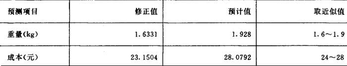 代入: C1=DS×GY×Bi=0.01466×485×0.71325 =5.0712(元) 将C7=28.0792元,CY=10(元),C1=5.0712(元)代入: G3=C7-(CY-C1)=28.0792-(10-5.0712) 28.0792-4.9288=23.1504 因此,预测第一方案更新后的矿灯重量修正值为1.6331kg,成本修正值为23..1504元。见表8: 表8