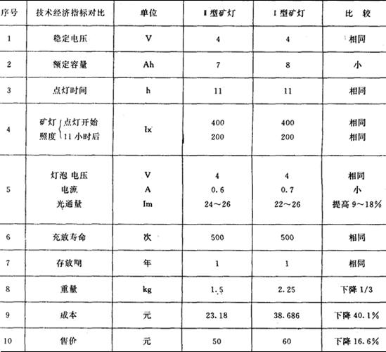 4.更新后的Ⅱ型矿灯与Ⅰ型矿灯在技术经济上的对比。见表13: 表13