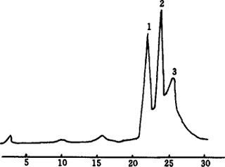 图5-5 α-、β-胡萝卜素异构体色谱图 1-α-胡萝卜素 2-β-胡萝卜素 3-β-胡萝卜素异构体 (二)第二法 纸层析法 1.原理 以丙酮和石油醚提取食物中的胡萝卜素及其它植物色素,以石油醚为展开剂进行纸层析,胡萝卜素极性最小,移动速度最快,从而与其它色素分离,剪下含胡萝卜素的区带,洗脱后于450nm波长下定量测定。 2.试剂和溶液 2.1 石油醚(沸程30~60℃) 同时是展开剂。 2.2 丙酮 分析纯。 2.3 丙酮-石油醚混合液 3+7(体积分数)。 2.4 无水硫酸钠 分析纯。 2.5 5%硫酸钠溶液。 2.6 1∶1氢氧化钾溶液 取50g氢氧化钾溶于50mL水。 2.7 无水乙醇 需经脱醛处理。 2.8 β-胡萝卜素标准溶液 取5mgβ-胡萝卜素标准品,溶于10mL三氯甲烷中,浓度为500μg/mL,准确测其浓度。 取标准溶液10.0μL,加3.00mL正己烷,混匀,测吸光度,比色杯厚度1cm,以正己烷为空白,波长为450nm,平行测定3份,取平均值。 2.9 分析结果的表述