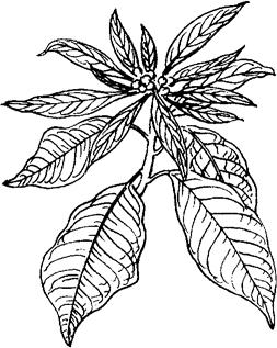 图2-26 一品红 (1)植物学特征。一品红,大戟科、大戟属。为落叶灌木,正常花期在12月中旬,花期长达两月有余。茎直立光滑,嫩树娇绿,老枝淡褐色,株高一般80厘米,单叶互生,卵状椭圆形或宽披针形,全缘或具浅裂,背有柔毛。观赏部位为苞叶,苞片披针形。苞片色艳,有大红、粉红、白和淡黄。花期较长,从12月份起,苞片和花朵可延续到春节后,既是较好的观赏盆栽花木,又是切花花卉之一。 (2)对环境与土壤的要求。一品红喜光、畏寒,好生湿润环境和疏松、肥沃,排水良好的偏酸性土壤。 (3)施肥技术。 ①每年换土1次,重新用培养土栽植。5月份开始,每月追施薄肥1~2次。 ②霜降之后,应施1次浓度较高的有机肥料,并保暖过冬。 |