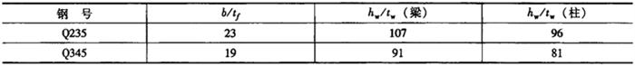 图12-11 钢骨板材的宽厚比示意图 表12-5 钢骨板材的宽厚比限制值
