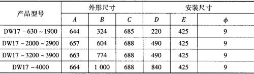 图1-27 DW17系列固定式外形及安装尺寸 表1-46 DW17系列固定式外形及安装尺寸/mm