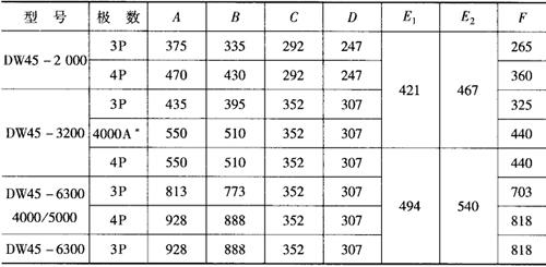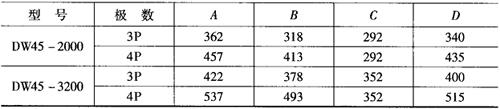 注:*DW45-3200可增容至4000A,安装尺寸与DW45-3200的4P相同。 |