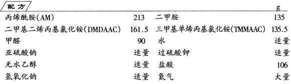(2)丙烯酰胺-三甲基单烯丙基氯化铵的聚合 AM与TMMAAC摩尔比为2∶1,反应温度为60℃,K2S2O8及Na2SO3各为单体总量的0.5%,单体总浓度为10%、20%、30%、40%、45%水溶液,聚合5h。