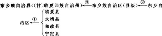 ①1950年9月25日析临夏县、永靖县、和政县、宁定县(今广河县)各一部分置东乡自治区(县级)。②1953年12月改为东乡族自治区。③1955年改为东乡族自治县。