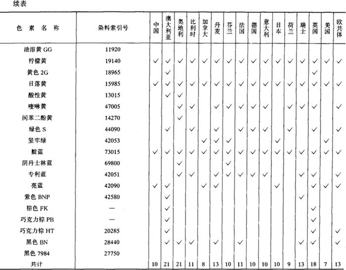 附表8-2 一些国家和组织许可使用的食用合成色素