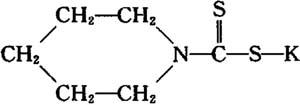 | 释义 | 五亚甲基二硫代氨基甲酸钾 【结构式】: