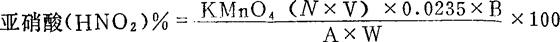 (一)适用范围 粗制的硝酸盐肥料往往含有亚硝酸,因此常是本项目的测定对象。本法是在硫酸条件下,高锰酸钾氧化亚硝酸,使本身红色褪尽而指示终点。方法操作简便迅速,适用于日常检验工作。但不适用于含有其它还原性物质或有机物质的化学肥料。
