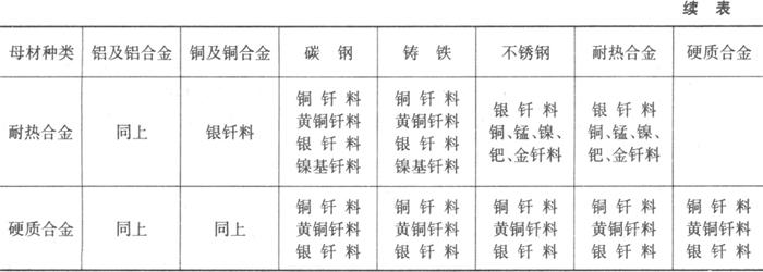 | 释义 | 从母材种类考虑 一般说来,从母材的种类考虑选择钎料时,主要考虑钎料润湿性、钎料与母材相互作用特点、钎焊温度、热膨胀、色调等。表10.4-1为从母材的种类考虑钎料类别。 表10.4-1 根据母材的种类选择钎料
