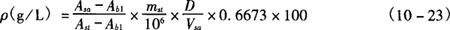 式中 Asa——样品溶液吸光系数 Ast——标准溶液吸光系数 Aa1——空白试剂平均吸光系数 mst——标准2-AB·HCl在100mL溶液中的重量,g msa——样品质量,g 5.2 质量浓度ρ