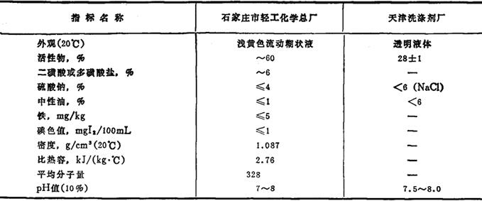 性能 浅黄色液体或固体。具有良好的去污力、泡沫力、乳化力和润湿力等。它在较广泛的pH值范围内都很稳定,抗氧化力强,对皮肤刺激性小,无毒,生物降解性优于LAS。