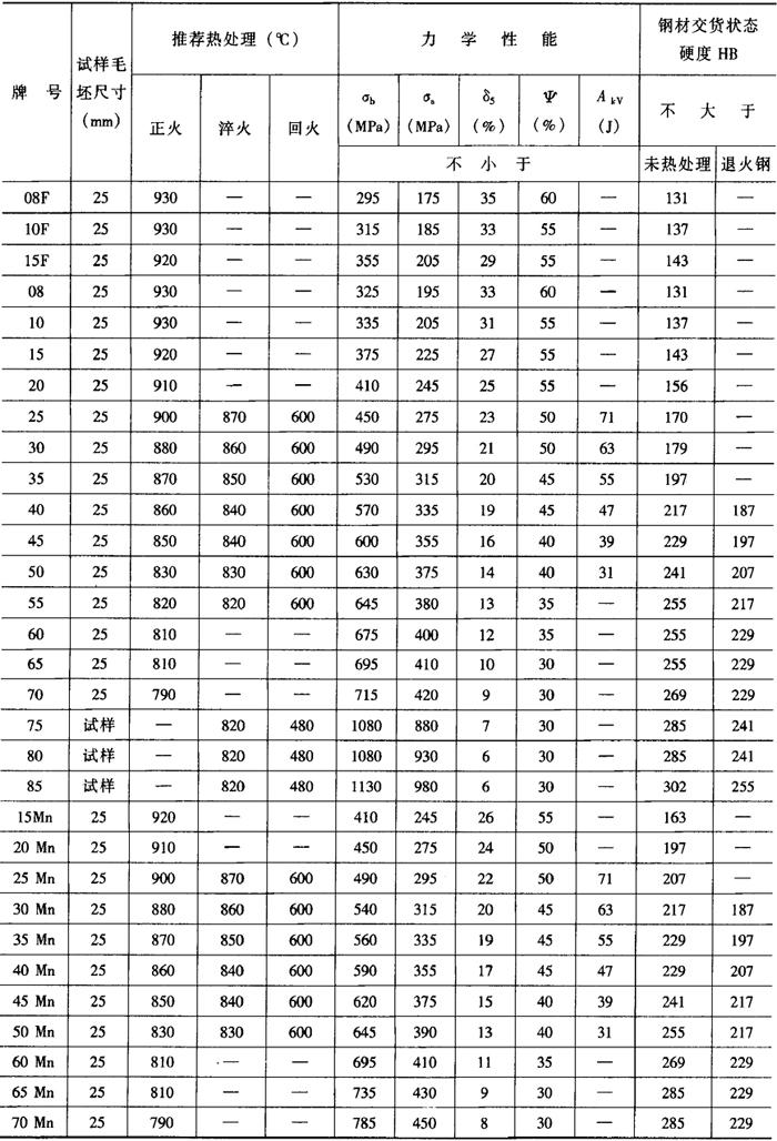 表2-2-6 优质碳素结构钢力学性能(GB699-88)