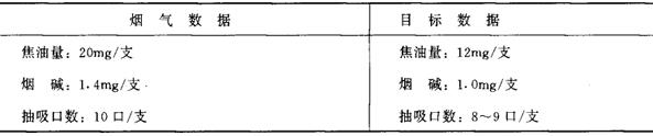 简例B: 1.数据分析 见表6-4-9。 表6-4-9 低焦油卷烟设计简例B数据分析