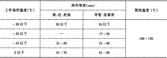 表2-2-21 低温条件焊接时的预热温度[1,3]