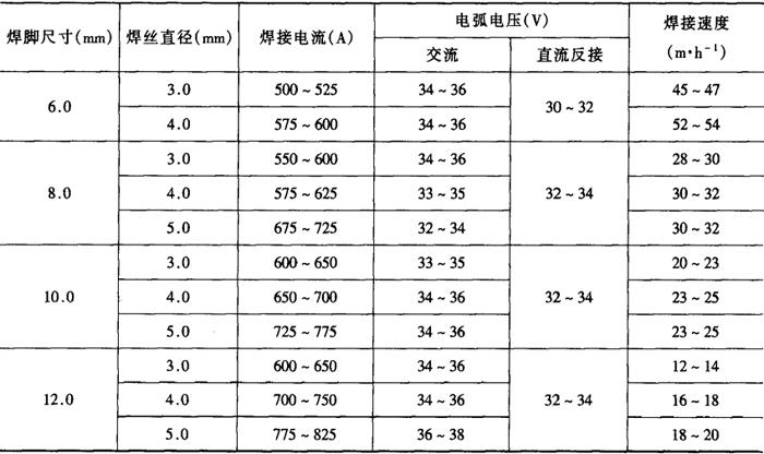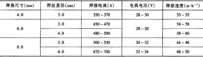 表2-2-37 低碳钢平角埋弧焊焊接工艺参数[3,4]