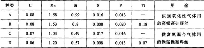 表2-2-40 混合气体保护焊焊接钢时的典型焊丝成分[7]