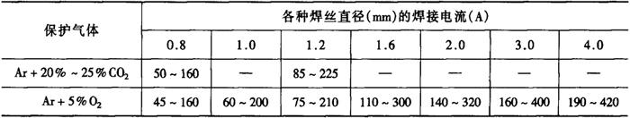 注:焊丝直径5mm,交流电源。 表2-2-29 不同直径的焊丝所应采用的焊接电流[4]