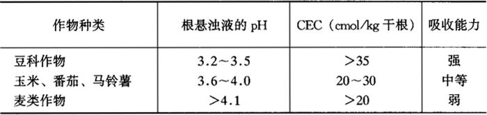 从表1-5中可以看出,豆科作物阳离子交换量大,吸收能力强,麦类作物阳离子交换量小,吸收能力弱;而玉米、番茄、马铃薯的阳离子交换量介于其间,吸收力中等。就同一作物来看,根的不同部位阳离子交换量差别也很大。如豌豆根尖的阳离子交换量每100g干根可达125mol,比其根的阳离子交换量平均值高1倍以上。 根的阳离子交换量的大小还影响对土壤中Ca2+、Mg2+等多价离子的吸收。试验采用赤豆和小麦进行比较,赤豆根的CEC较大,每100g干根为47.3mol,小麦较小,为13.0mol。并于幼苗期测定Ca、Mg、K的吸收量,赤豆不仅吸收阳离子总量较高,而且吸收二价离子Ca2+、Mg2+也明显的多。但每单位根的CEC吸收的(Mg+Ca)量,两种作物大体相同。这表明Ca2+和 Mg2+的吸收量与根的CEC有极高的依赖关系。而根对K+吸收的影响,相对比较微弱,这是由于K+的吸收受温度的影响较大,即K+的吸收受代谢作用的影响较大。而Ca2+、Mg2+的吸收则与被动吸收密切相关。 作物吸钙的能力是指作物能吸收难溶性磷酸盐中磷的能力。根的CEC较大的作物,对难溶性磷酸盐具有较大的吸收能力。因为它对钙的结合能力较大,故能利用难溶性磷酸盐中的磷。有不少试验研究根的阳离子交换量与吸收磷矿粉中钙和磷的能力,并根据植株中CaO/P2O5的比率来衡量这一能力。前苏联试验用32种植物进行研究,结果表明,植株中CaO/P2O5的比率一般在1.3~8.0范围内。而在1.3~4.0之间的植物,具有利用磷矿粉中难溶性磷的能力,并把CaO/P2O5>1.3作为难溶性磷的生理指标之一。中国科学院南京土壤研究所进行了类似的试验,结果指出,植株地上部分CaO和P2O5含量与根的CEC的次序大致相符。凡是利用磷灰石粉较强的作物,P2O5/CaO大多较高,在0.31~0.81之间相当于CaO/P2O51.2~3.2;利用磷灰石粉较弱的作物,则P2O5/CaO较低(0.13~0.14)。各种作物对磷灰石的相对感应的递减次序为:萝卜>大豆>豇豆>养麦>小白菜>番茄>燕麦>紫苜蓿>菠菜>大麦>黑麦草。 另有试验报道,甘蔗不同品种根的CEC与产量有关,虽然根的阳离子交换量与作物吸收养料的强弱甚至产量有关,但作物吸收养料还是以主动吸收为主。合理施肥固然要考虑到根的特征,更重要的还是以作物为主,因为它能反映作物整个植株的生长情况,当然也包括根在内。 2.植物根系代谢作用 植物根系活力是指根系的整个新陈代谢情况,包括根系的呼吸作用、氧化力、酶活性、阳离子交换量等。在植物个体发育过程中,随着其生长发育,根系生长由幼嫩、健壮,直至衰老,它的代谢也由弱变强直至衰退。从植物根代谢特点来看,氧化力是衡量根系活力的重要标志。例如,水稻生长在缺氧的土壤上,尽管土壤中含有大量亚铁离子、有机酸,甚至还有硫化氢等有害的还原物质,对水稻根的有氧呼吸和氧分的吸收有不同程度的抑制,然而水稻主要靠茎、叶通气组织自大气中输入氧气,尤其是水稻根中还有一条“乙醇酸途径”,可产生过氧化氢,在过氧化氢酶的作用下,可以产生氧,增加了水稻根部产生氧化力的一条特殊代谢途径。生产实践可看出,凡是栽培过水稻的土壤,其根系附近都有赤褐色的网状锈斑,这就是稻根所产生的氧化力在根群周围形成的一层氧化圈。尽管水稻土中含氧量低,但由于上述因素可使其根系进行正常的有氧呼吸和生长。 作物根部不仅有氧化力,也有还原力。大豆某些品种根的还原力很强。据国外报道,将大豆的两个品种PL和HA生长在同一石灰性土壤中,HA生长正常,而PL不久叶片发生缺绿症,生长很差。用放射性55Fe作溶液培养试验,证明HA根吸收铁的能力很强,即使土壤中铁浓度很低,也能吸收利用,正常生长,而PL的根吸铁能力很差。测定两者根的还原力时,将根培养在铁氰化钾和氯化高铁的溶液中,还原力强的根可将氯化高铁还原为亚铁,然后与铁氰化钾起反应生成蓝色的铁氰化亚铁。 2K3〔Fe(CN)6〕+3FeCl2=Fe2〔Fe(CN)6〕2+6KCl HA品种根的还原力强,在6h后根毛就被染成蓝色,8h后,溶液也能变成蓝色。 水稻在开花期,能将NO3-还原为NO2-,这是由于水稻根可适应形成硝酸还原酶,将硝酸盐还原为亚硝酸盐的结果。 根系代谢作用还与养料吸收关系密切。许多试验证明,根系代谢对氮、磷、钾的吸收各有不同的途径,但都与呼吸作用有关。如根内形成的各种有机酸,都是氨的受体,可以形成各种氨基酸,通过转氨基作用,又转为各种不同氨基酸,最后合成蛋白质。根部呼吸作用与磷酸化作用相偶联,吸收无机磷,形成三磷酸腺苷(ATP)。钾的吸收通过试验证明,它与根中核糖核酸的消长有一定关系。当溶液中加入少量EDTA时,不仅抑制了核糖核酸的形成,而且抑制了钾的吸收。可见植物根部代谢与氮磷钾的吸收密切相关。 3.根际与根内微生物与作物营养的关系 各种作物在生长期间,根系常产生多种分泌物。由于作物种类不同,生长时期不同,代谢方式不同,所以根系分泌物的种类和数量也有所差异。根系分泌物有两类,一类是有机化合物,另一类是无机化合物,且以前者为主。比如小麦根分泌物,经鉴定有各种糖、氨基酸、有机酸、核苷酸和酶。豆科植物根系分泌物中含氮有机物较多,玉米根系分泌物却为含氮和不含氮的有机化合物。 各种作物根分泌物的数量不同。如生长20d的豌豆每株分泌出还原糖2.9~4.3mg,相当于植株干重的0.14%~0.23%;而每株玉米分泌的还原糖达5.4~8.2mg,相当于植株干重的0.23%~0.35%。由于作物种类不同、生育期不同以及气候、土